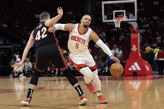 籃球直播吧10月21日訊 NBA季前賽,主場作戰(zhàn)的休斯頓火箭以110-104的比分擊敗邁阿密熱火。申京16分12籃板3助攻,漢普頓17分3籃板5助攻。