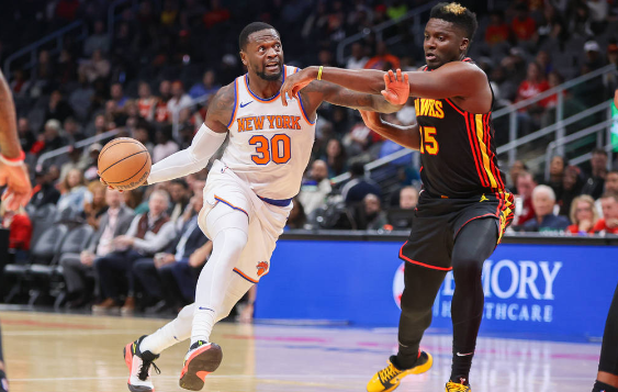 尼克斯隊首發(fā):朱利葉斯-蘭德爾、杰倫-布倫森、昆汀-格蘭姆斯、約什-哈特、米切爾-羅賓遜