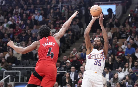 太陽(yáng)隊(duì)首發(fā):凱文-杜蘭特、尤素福-努爾基奇、約什-奧科吉、埃里克-戈登、德文-布克