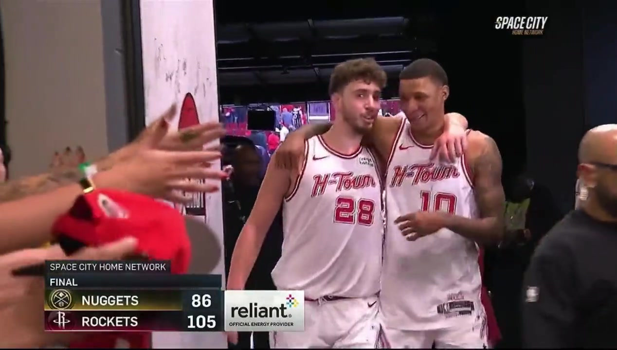 雙殺衛(wèi)冕冠軍非常興奮!申京與賈巴里-史密斯在球員通道挽著肩