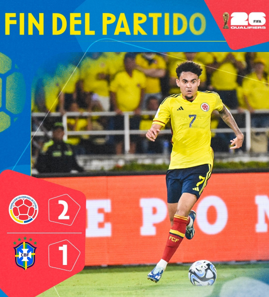 第75分鐘,阿斯普里拉助攻,迪亞斯頭球破門,哥倫比亞扳平比分。
