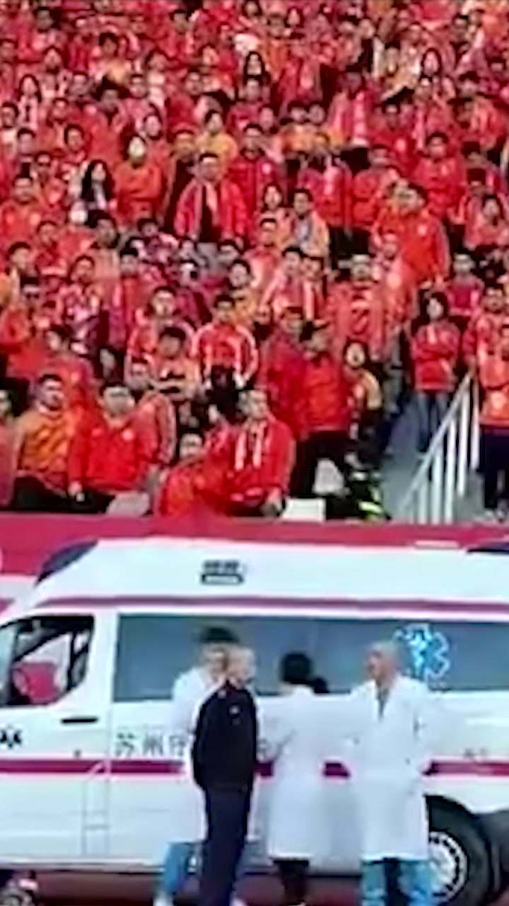 急救車停在泰山球迷看臺(tái)前,球迷高喊:開走