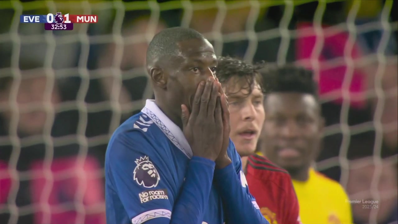 埃弗頓再失良機(jī)!杜庫雷不停球推射擦柱而出!